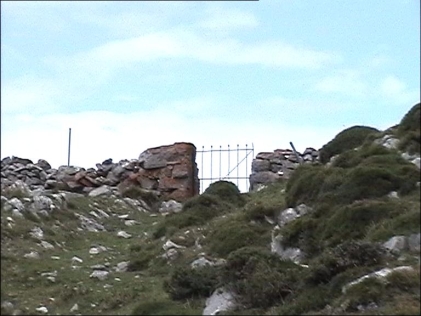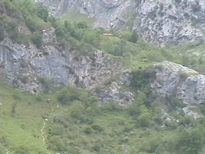 La senda es de ganado y está muy clara; entra en el roquedal por una brecha jitada como si fuera un pórtico,desapareciendo brevemente en el prado